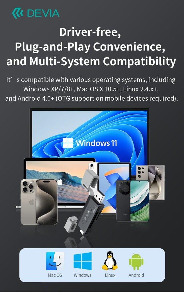 توافق نظام التشغيل: ويندوز XP/7/8 +؛ ماك OS X 10.5 +؛ لينكس 2.4.x +؛ أندرويد 4.0 + (يتطلب دعم OTG على الأجهزة المحمولة)