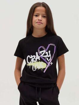 تيشرت OVS للأطفال من القطن الأورجانيك باللون الفوشيا بياقة دائرية
