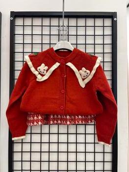 طقم تنورة وجاكيت صوفي للبنات من Beyram - أحمر (١ سنة)