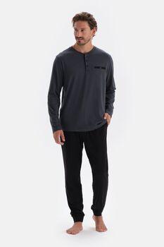 طقم بيجامة داجي أنثراسايت بنصف أزرار وأكمام طويلة من القطن والمودال