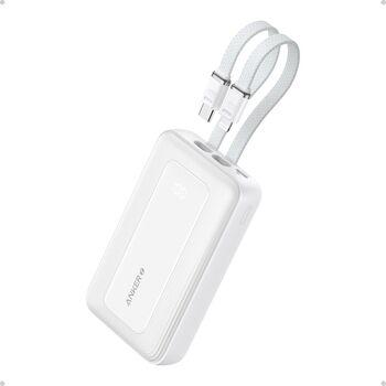 باور بانك أنكر - ١٠ آلاف mAh، ٣٥W، مع كابل USB-C مدمج - أبيض (A1680H22)