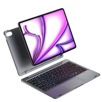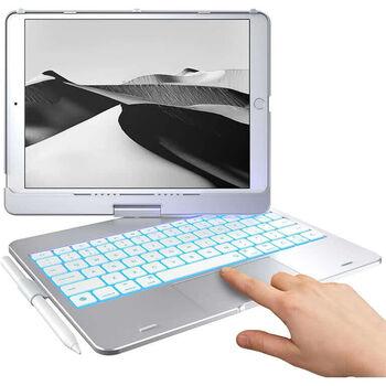 كيس كيبورد آيباد، دوران 360 درجة، إضاءة خلفية بـ7 ألوان، فضي