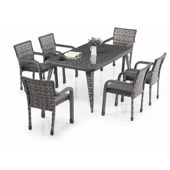 طاولة + 6 كراسي من الروطان نوع لورا - رمادي