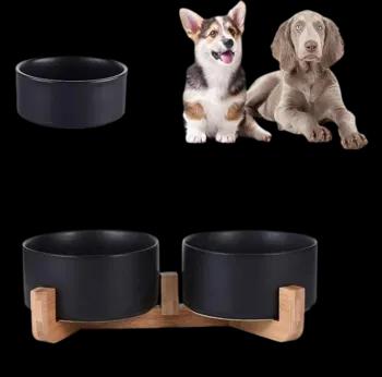 وعاء مزدوج من السيراميك الأسود للقطط والكلاب